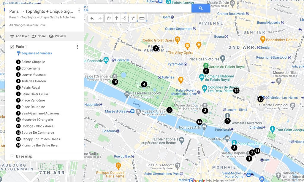 - I – Louvre Museum. This is the historic district of the city of Paris with its main significant places: the Louvre, the Tuileries Garden, the Place Vendome.