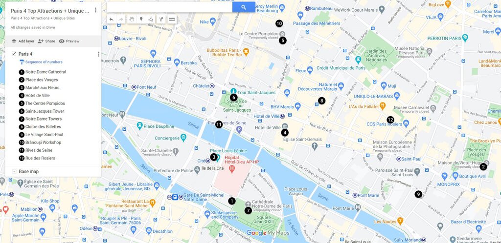 - IV-Hotel de Ville. The historical part of Paris with the City Hall, the bohemian Marais quarter, the Cathedral of Notre-Dame de Paris and part of the Latin Quarter with inexpensive restaurants.