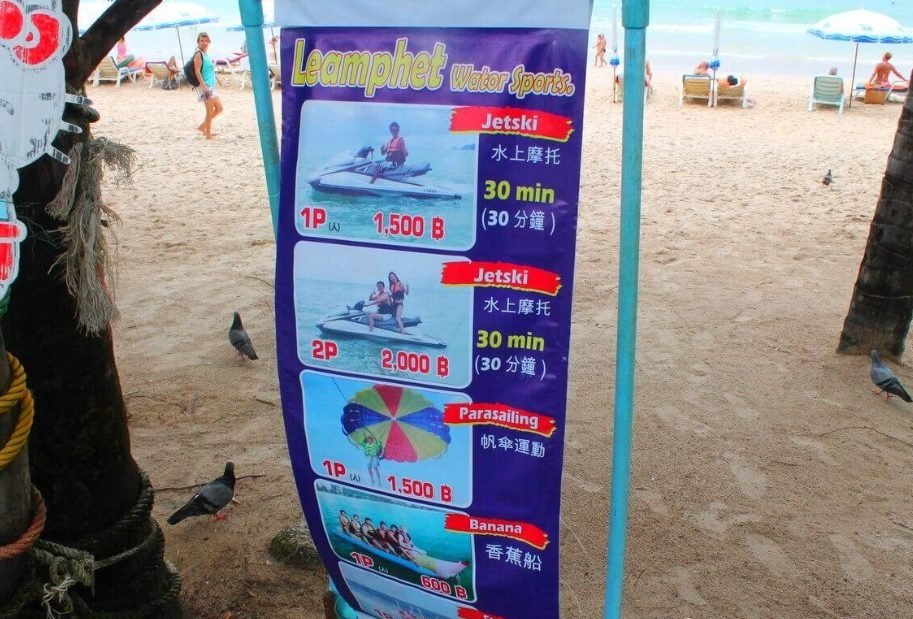 Like many beaches in Phuket, Patong pleases vacationers with a variety of entertainment options. Although there are fixed prices, you always need to bargain and discounts are often made. Prices are as follows (in baht):