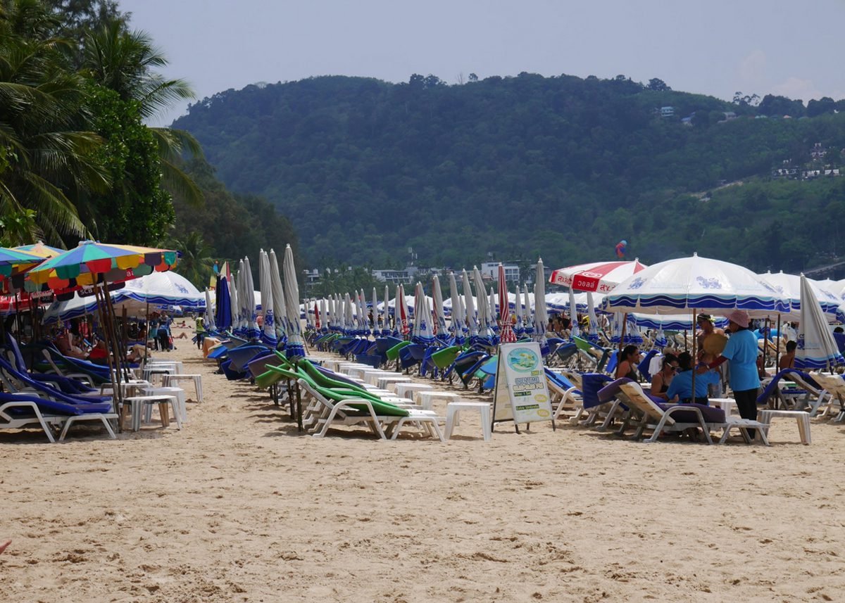 There are areas where you can lie down on your towel or mat (they are sold for a maximum of 250 baht). But, in some of the most crowded areas of Patong beach, vacationers are simply not given the opportunity to lay towels: they are prevented from lying quietly, their things are touched, provoked in every possible way and literally forced to rent a sunbed.