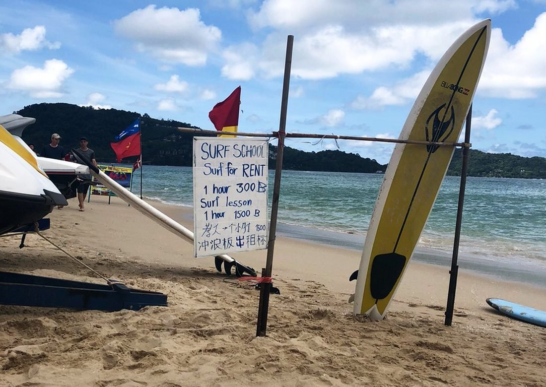 There is a nice surf club with artificial waves (address: 162/6-7 Thaweewong Road, Katu, Phuket 83150, Thailand). There are always a lot of people there, but the training is conducted by excellent professional instructors! Flyers are often distributed on the beach, where you can get a discount. Prices are as follows (in local currency):