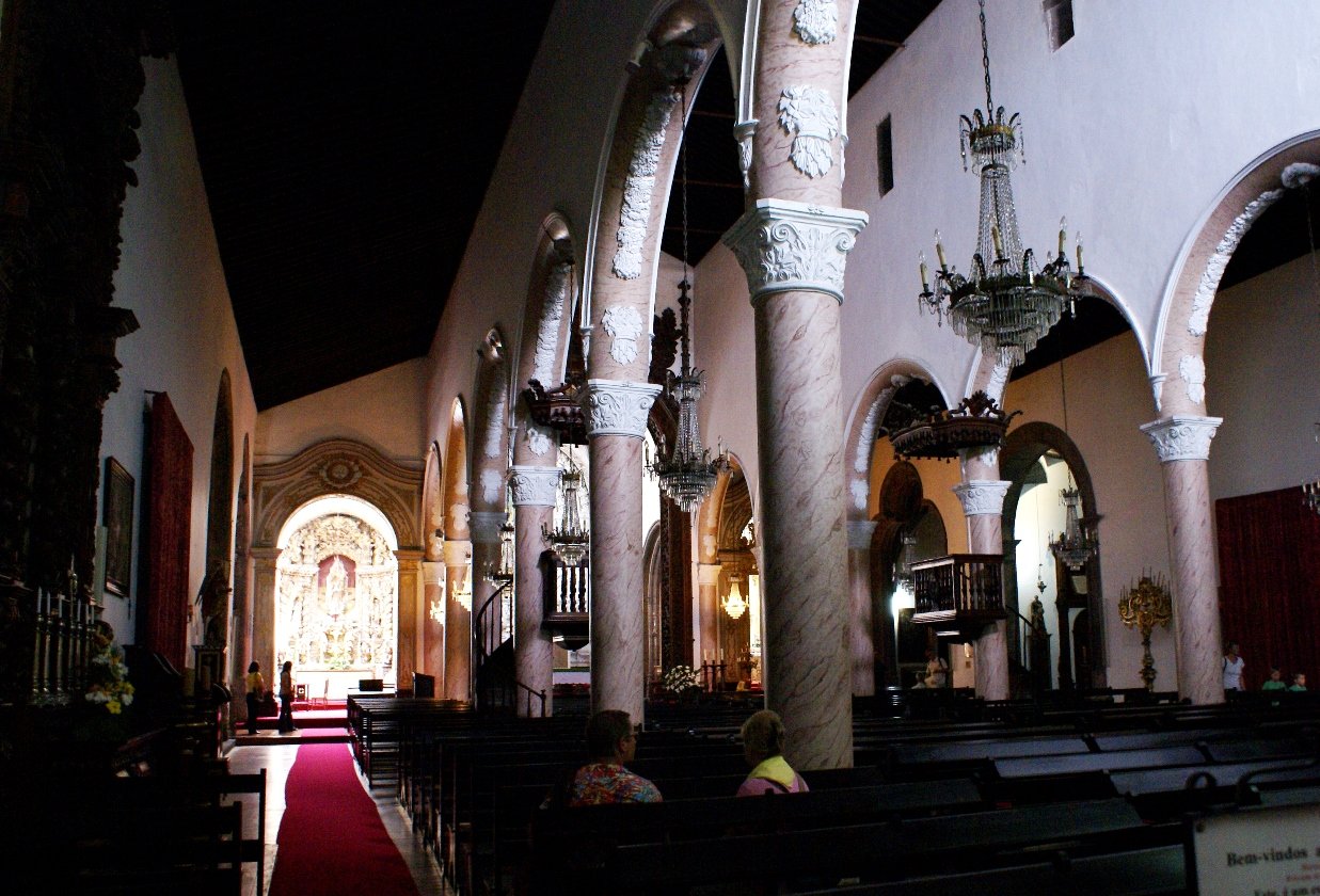 St. Sebastian’s Church is known for its golden tapestries, rare Brazilian wood furnishings, and a carved cedar altar.