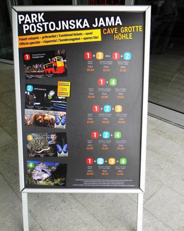 You can check the current prices on the website www.postojnska-jama.eu/en/. Tickets on the website are cheaper than at the ticket office at the entrance to the park.