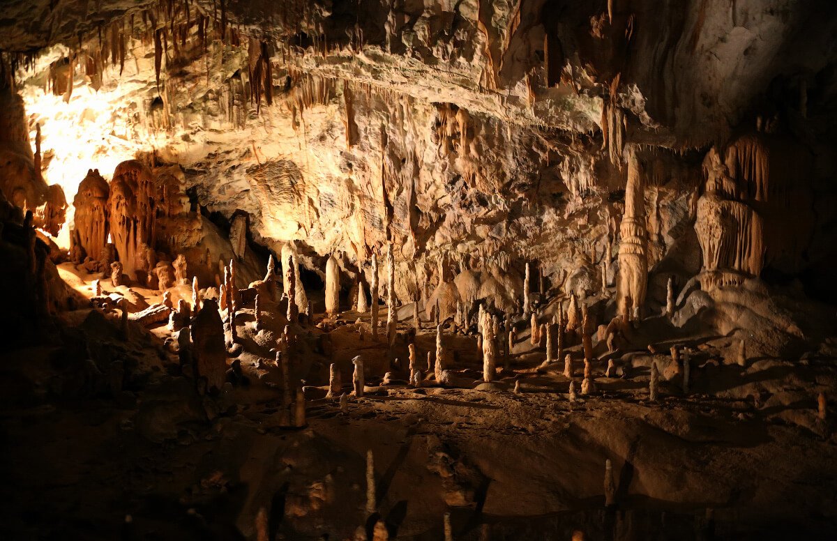 The first place where the train takes tourists is the Old Cave, which was discovered in 1818 by a Slovak named Luka Čech, who lived nearby. The cave has been the subject of interest from speleologists and archaeologists, who have discovered other previously unnoticed passages. The Pojstina Jama contains a variety of unusual chambers, but the most beautiful and well-known part of the cave is the Conference Hall. Its grand size, walls covered in intricately curved smooth stone, and excellent acoustics create a sense of solemnity and seriousness. During the Christmas holidays, a huge Christmas tree is set up in the Conference Hall, and performances based on biblical stories are held, accompanied by live music and stunning lighting.
