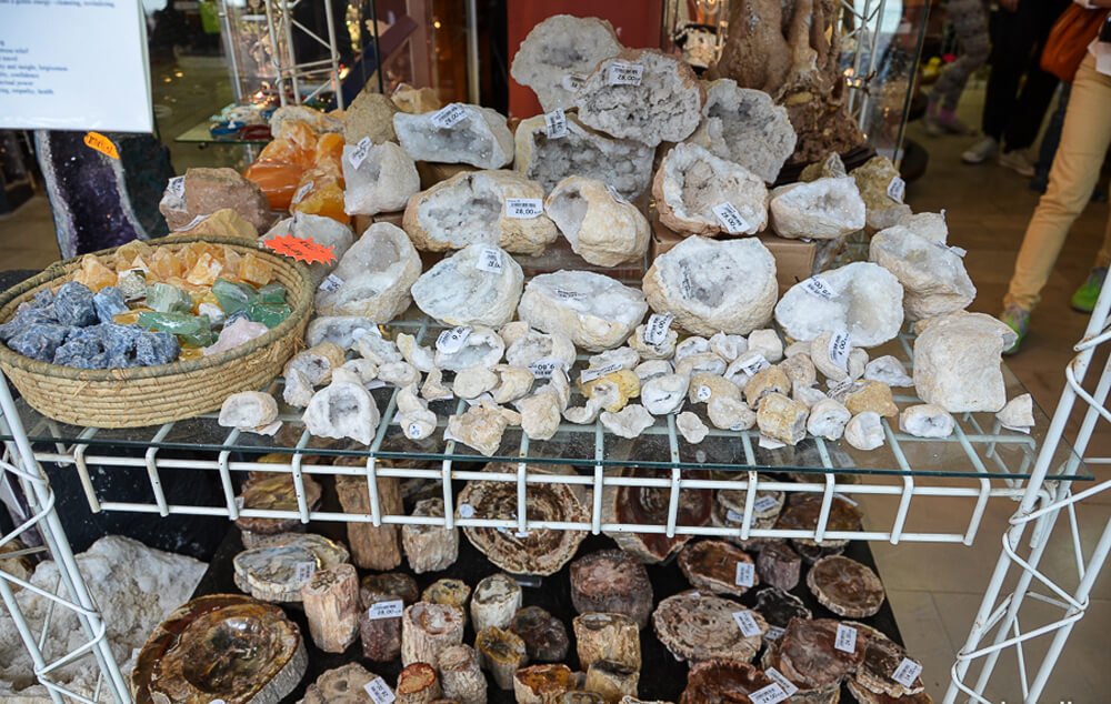 After the tour of Postoynskaya Yama, you can walk around the souvenir shops, which are numerous. The main assortment of these shops consists of an incredible number of various jewelry items made of gemstones, raw semi-precious stones, and standard souvenirs.