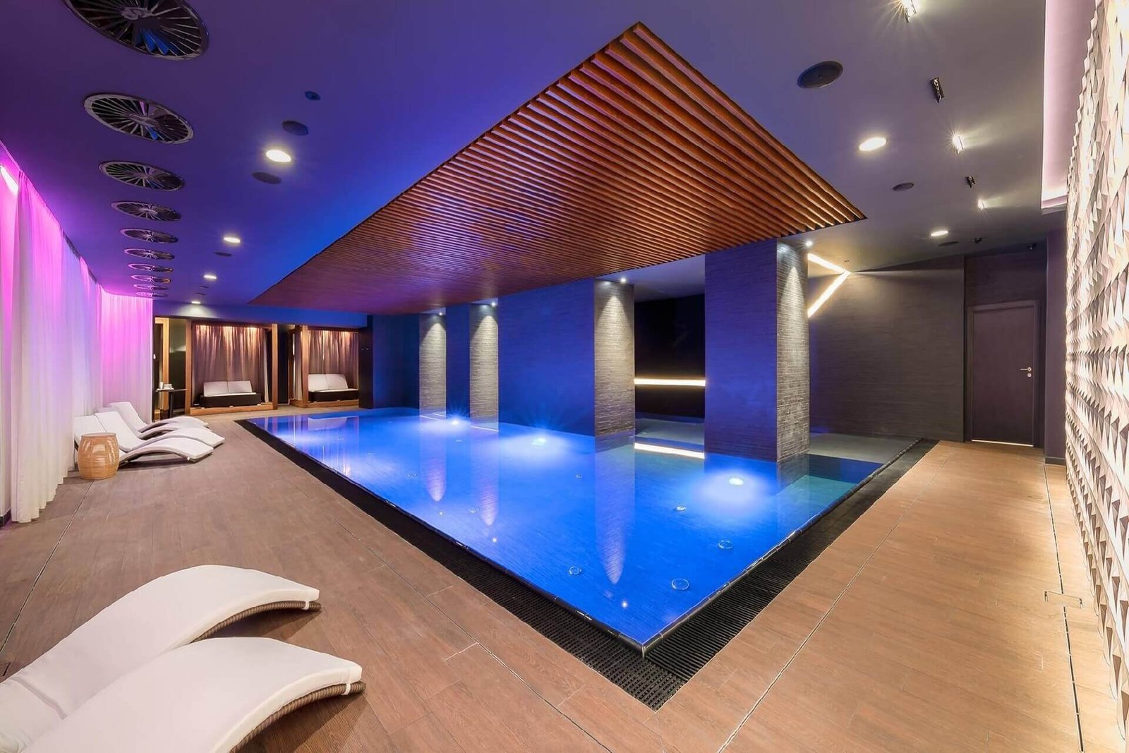 LivingWell is a well-equipped spa center with a fitness room where guests do pilates and yoga, a bath complex, including a steam room, sauna, and a spacious indoor pool, a treatment area (massages, spa, aromatherapy), and an open terrace for relaxation.