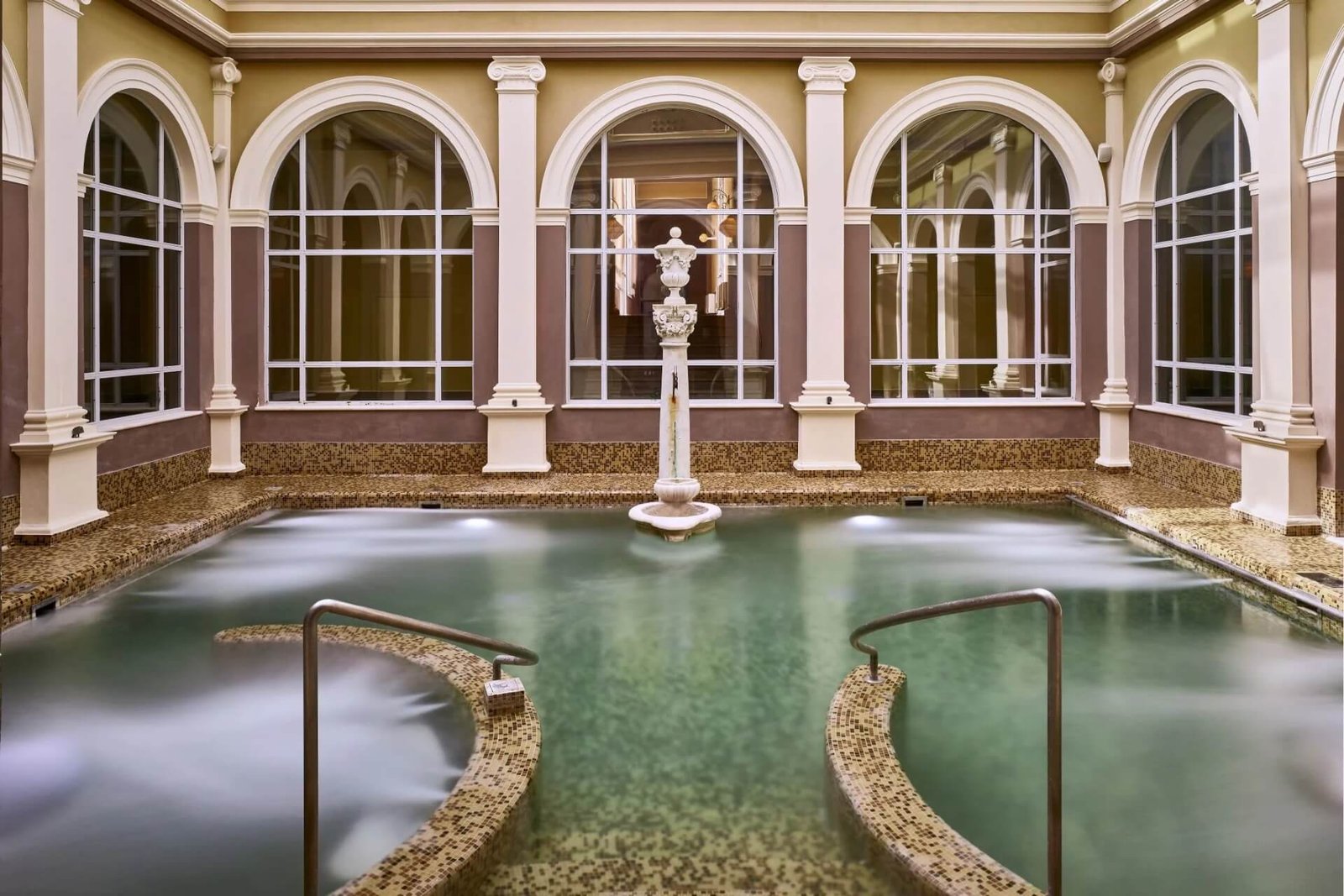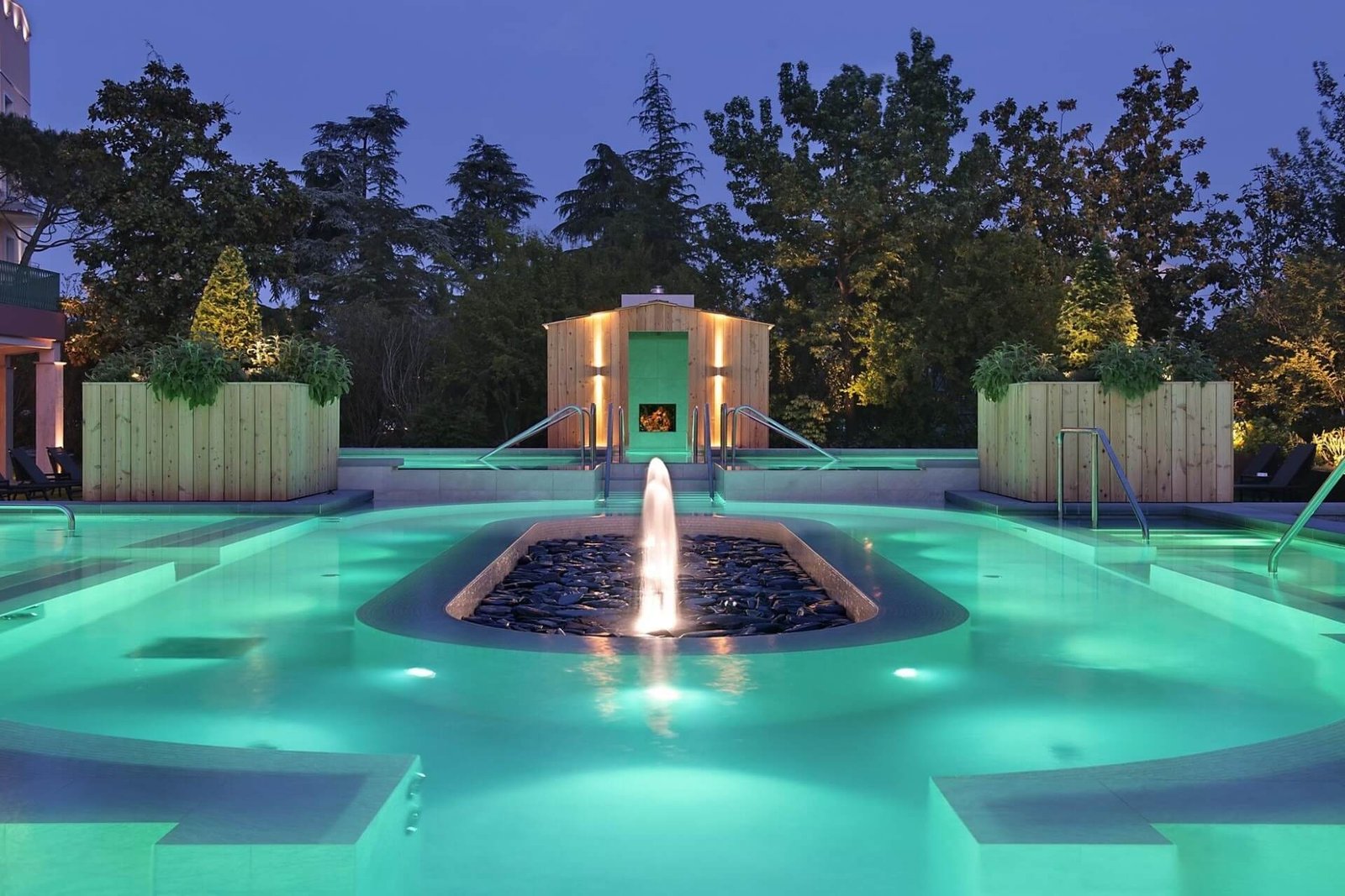 Most of the territory is occupied by the wellness thermal center with outdoor and indoor pools, hydromassage baths, a Turkish bath, and a sauna. The old panoramic pool reminds of the healing traditions of Ancient Rome. The water in the pools is completely replaced daily.