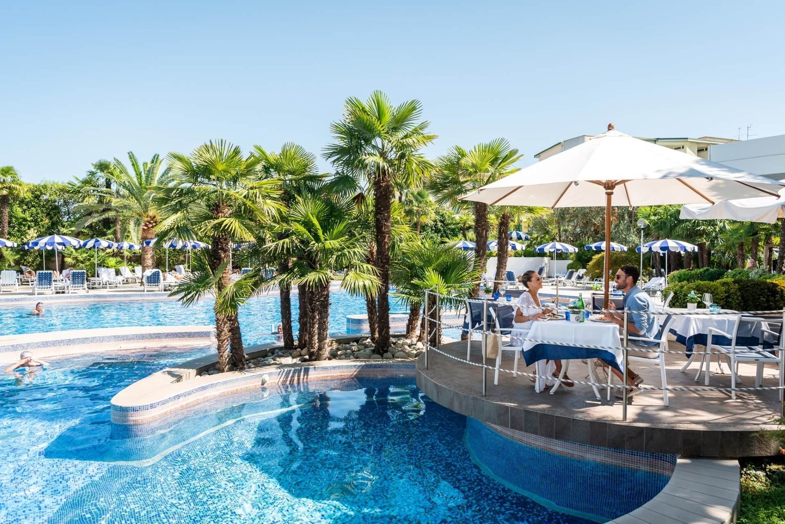 Balneotherapy specialists at the Grocco Institute balneocenter provide a wide range of water treatments, massages, and mud therapy year-round. In winter, the thermal baths are served by the closed wellness establishment “Excelsior,” while in summer it only offers spa services.