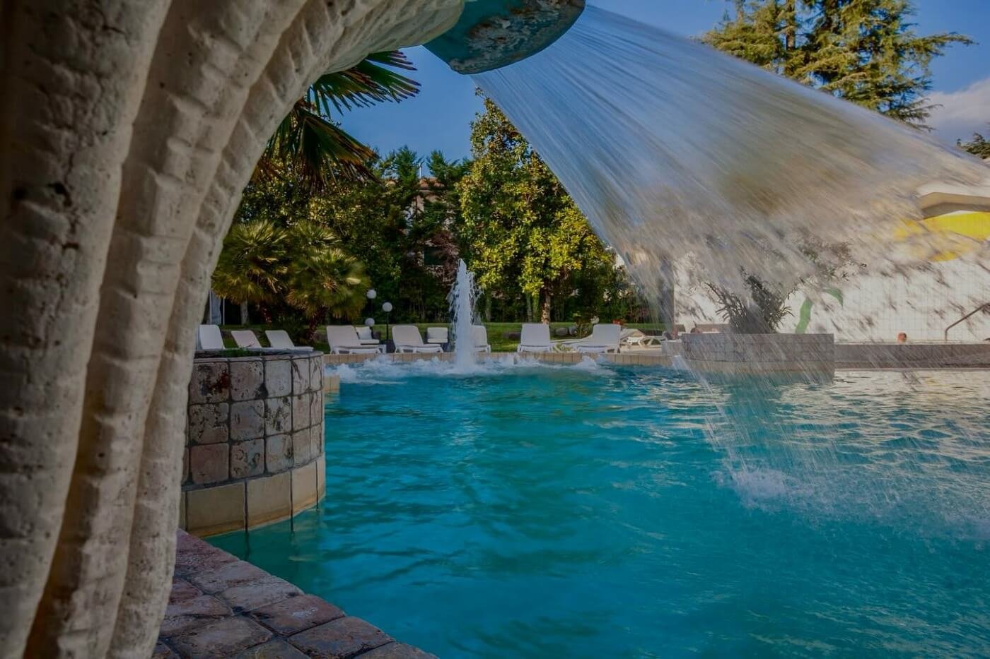The thermal baths have two large pools, one deeper for adult swimming and the other shallower, perfect for children. They help cure dermatological diseases and muscles, eliminate cellulite, and strengthen and rejuvenate the body.