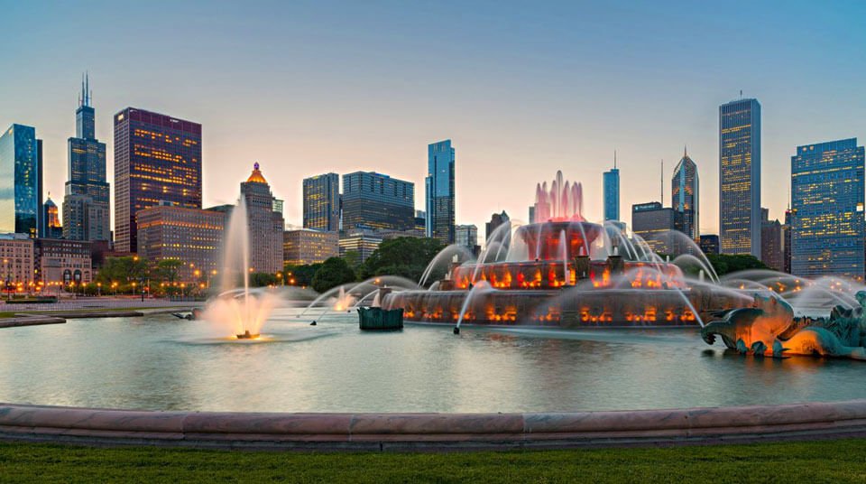 The landmark of Grant Park, occupying a vast green area of Downtown Chicago, is the grand Buckingham Fountain. It was opened in 1927. The daughter of one of Chicago’s philanthropists, Kate Buckingham, was involved in the construction of the water attraction. She wished to immortalize the memory of her brother.
