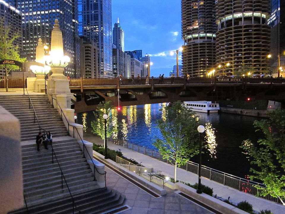 Walking along the Chicago Riverwalk leaves an unforgettable impression. This landscaped multi-kilometer pedestrian boulevard runs through the city’s central quarters. From here, mesmerizing views of the grand architectural ensemble open up. The high-rise buildings impress with their grandeur and fantastic beauty. The embankment is equipped with terraces for sunbathers, sports grounds, and cozy green areas for peaceful relaxation.