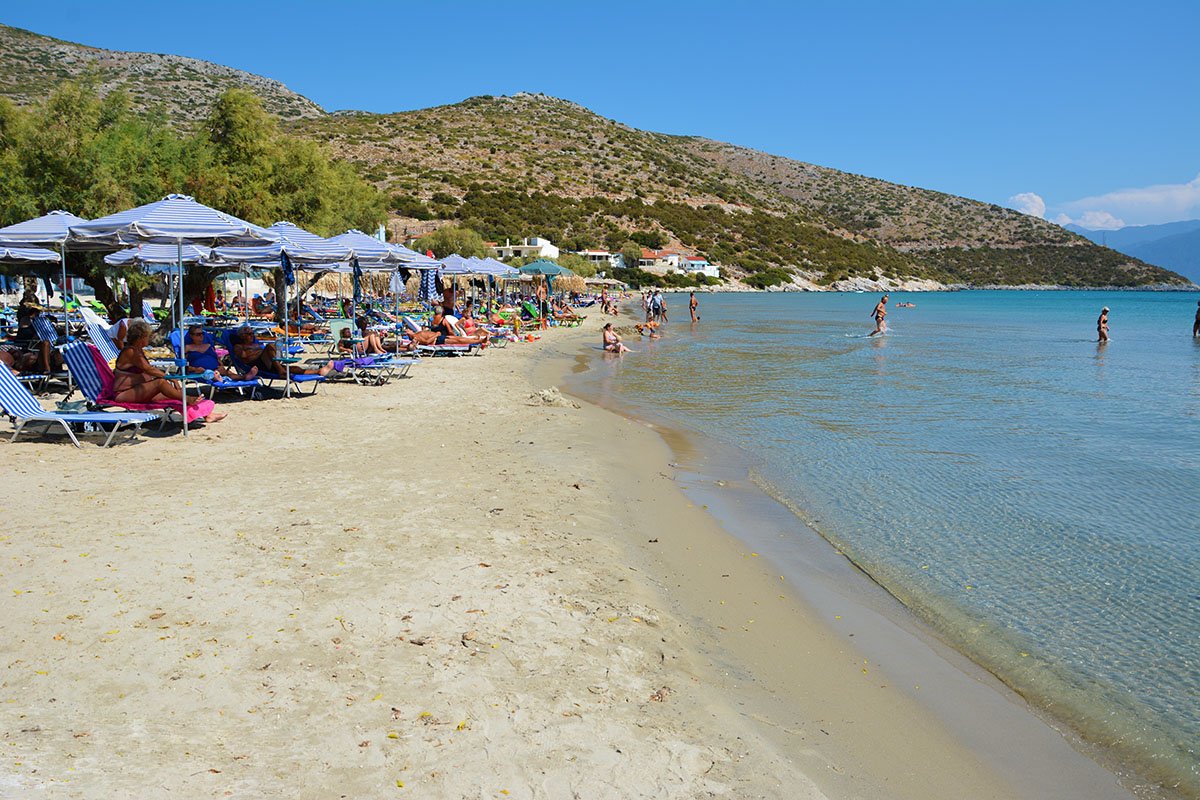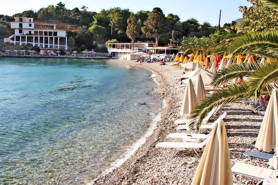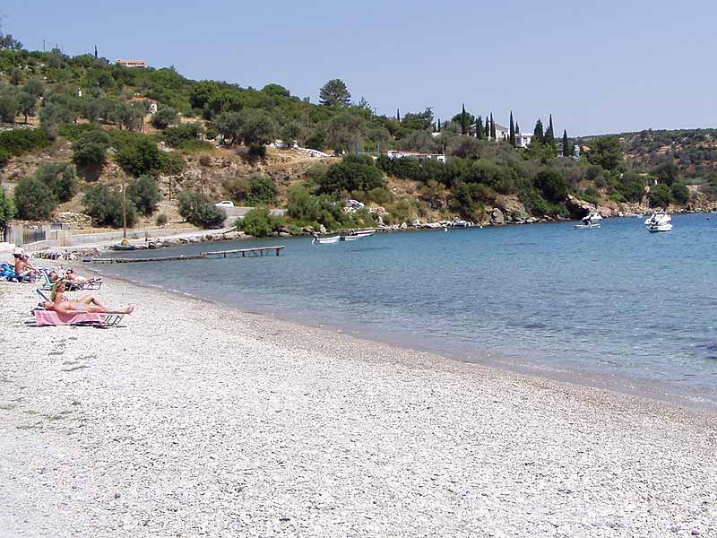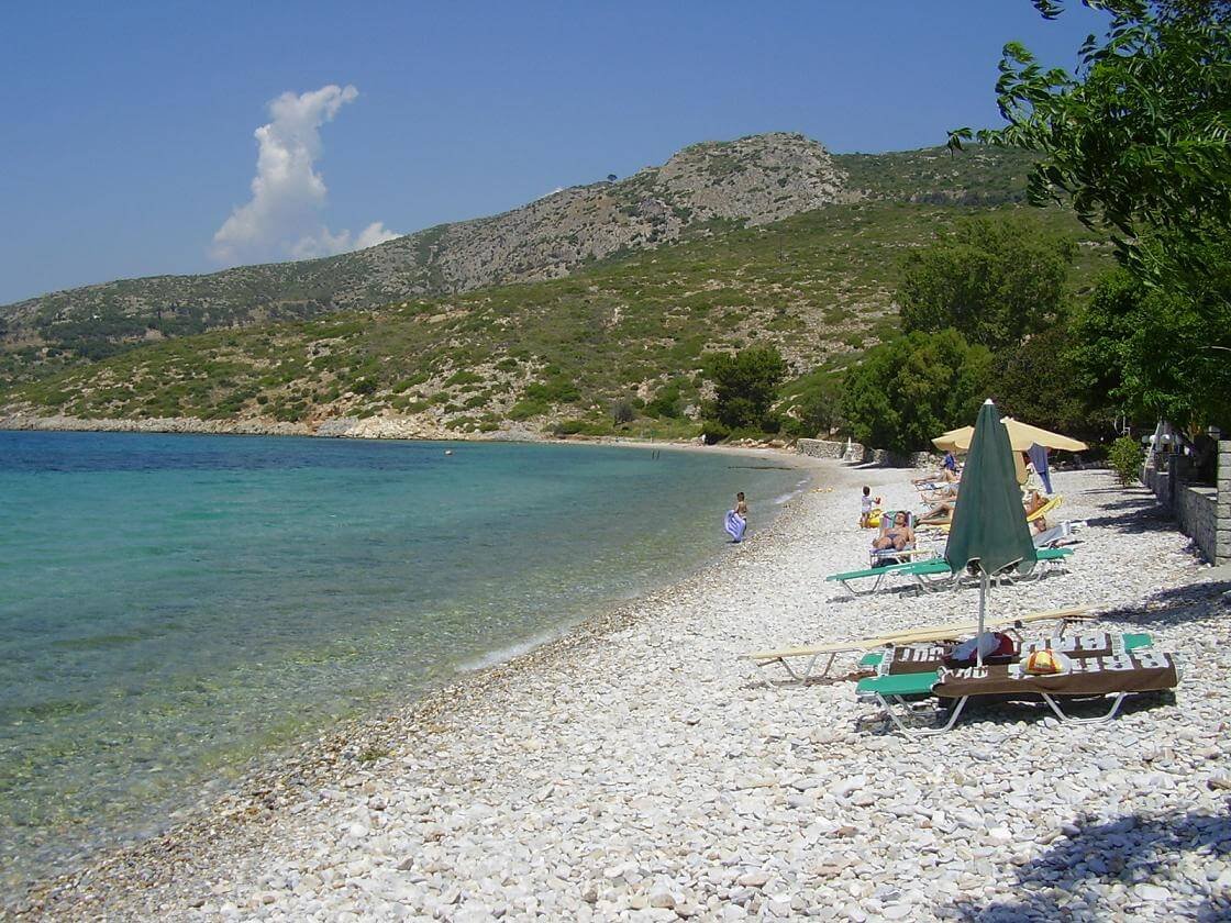 This beach is usually visited by tourists who are passing through the island. Here you can hide from the heat. The beach is covered with pebbles and is only a 25-minute walk from the town of Samos. Its length is about 100 m. There is a restaurant-bar, paid sun loungers with umbrellas. It is worth keeping in mind that this beach is popular with refugees, they can be seen throughout the day.