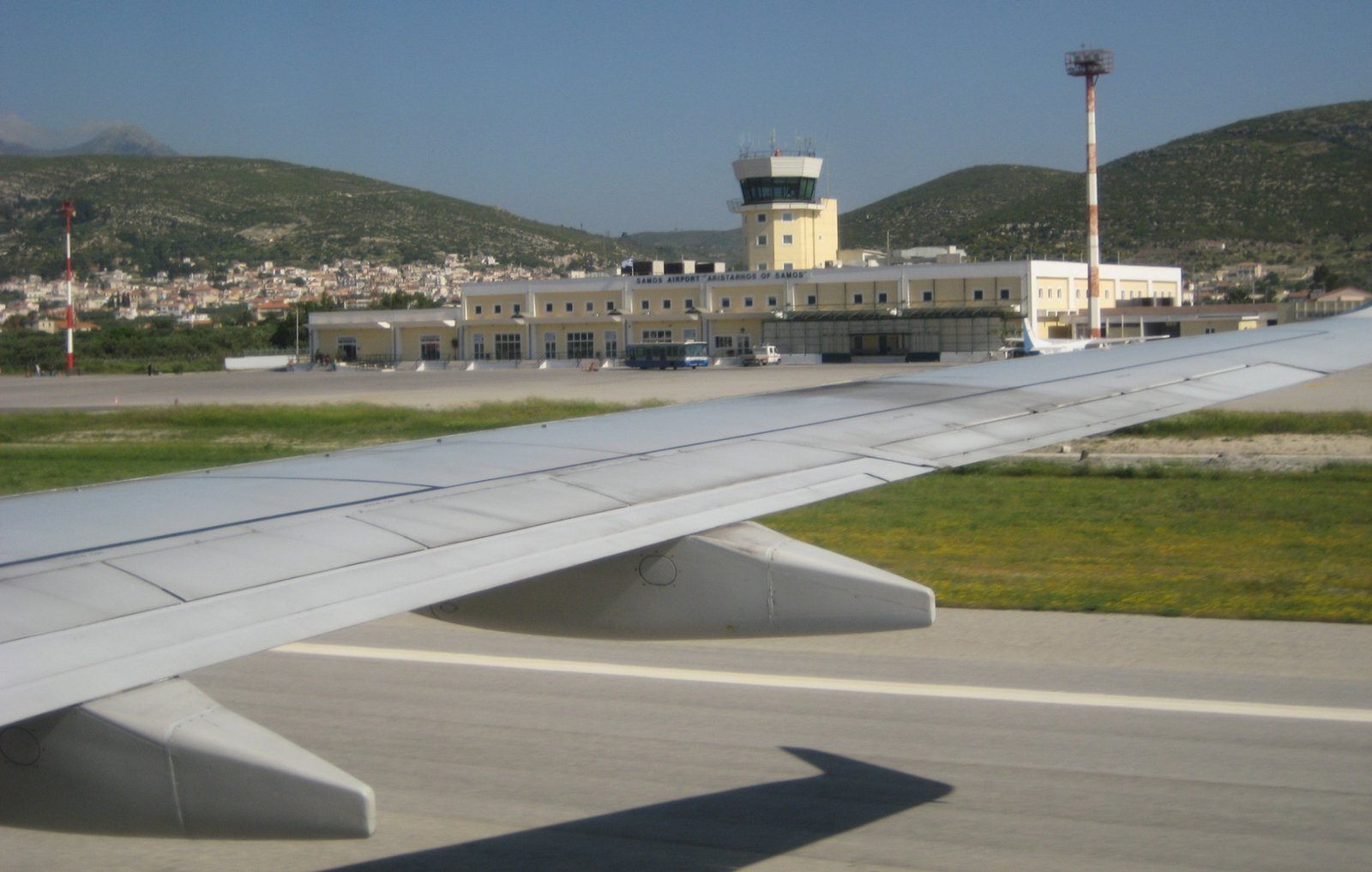 A few kilometers west of Pythagorio is the international airport “Aristarchus of Samos”. The airport is built near the sea, so all flights fly over the heads of vacationers.