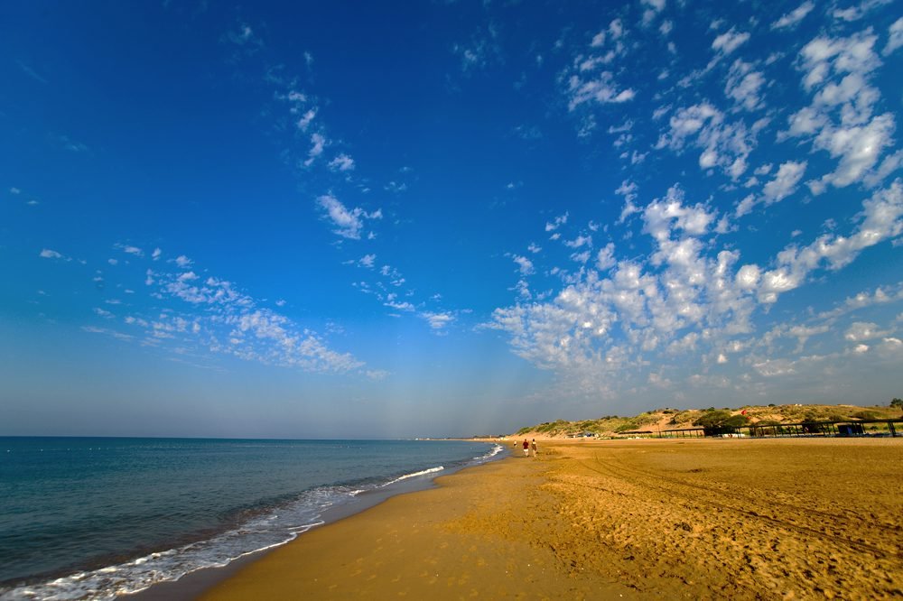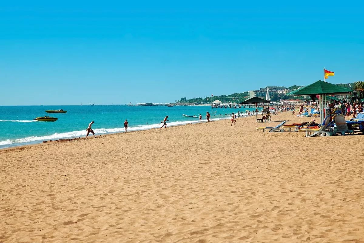 The western shore of Side is characterized by yellowish, and sometimes light gray sand. The approach to the sea is gentle, the depth increases slowly. In high season, there are always a lot of people here: most of the tourists are Europeans. A variety of water activities are offered in the well-equipped areas, and along the coast there is a well-groomed promenade where you can rent a bike or take a leisurely walk among the lush vegetation.