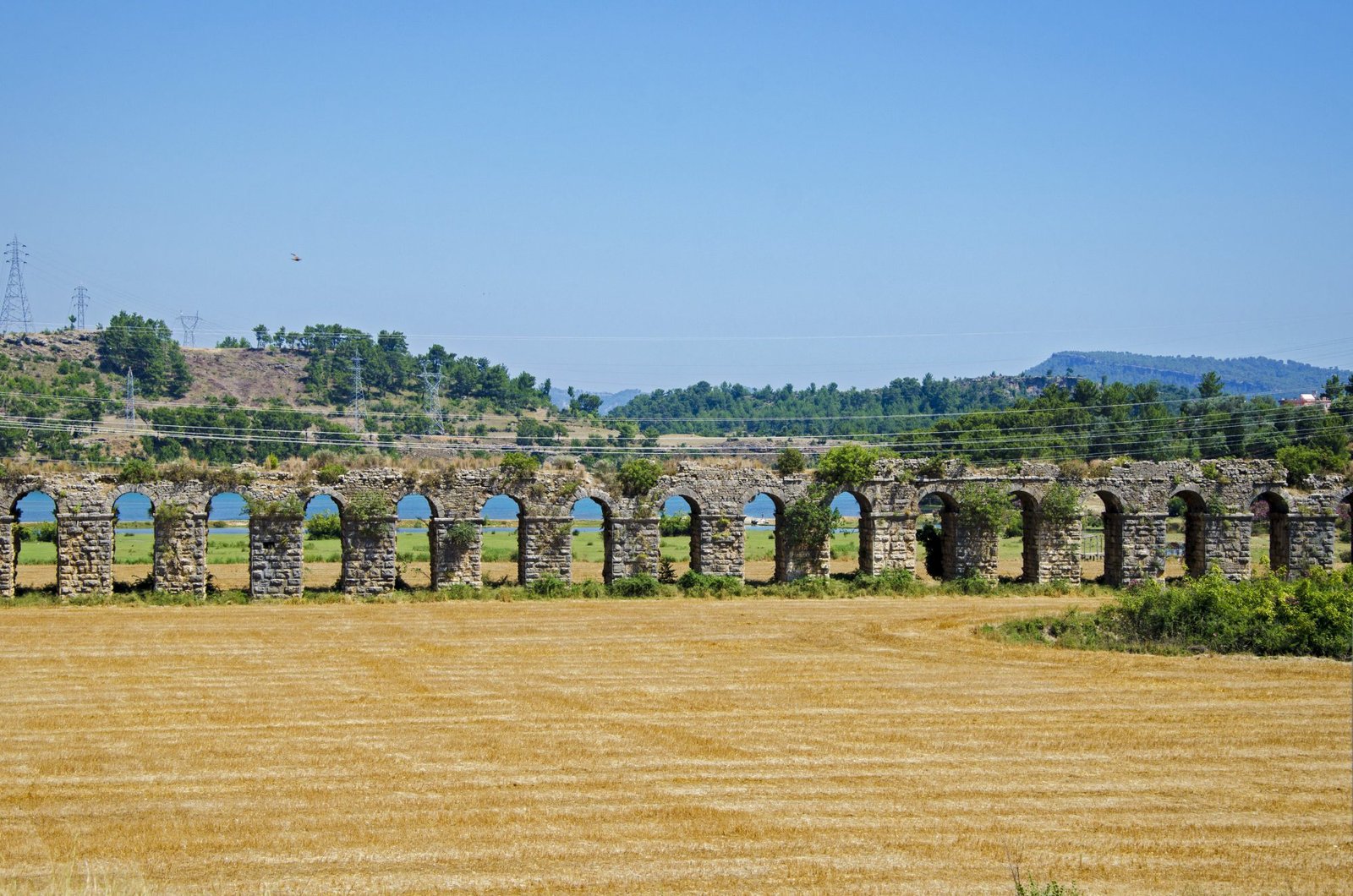 Often in the photo of the city of Side and other resorts in Turkey, you can see ancient stone arched structures stretching for several kilometers. This is nothing more than aqueducts — a system of ancient Roman aqueducts, through which water entered the houses of ancient cities. Today, the remains of ancient water supply structures can be observed all along the Mediterranean coast. Side also has an ancient water supply system that stretches for a distance of 30 km and includes 16 tunnels and 22 aqueduct bridges. Once upon a time, water came to the city from the Manavgat River through an underground pipe located 150 m from the main gate.
