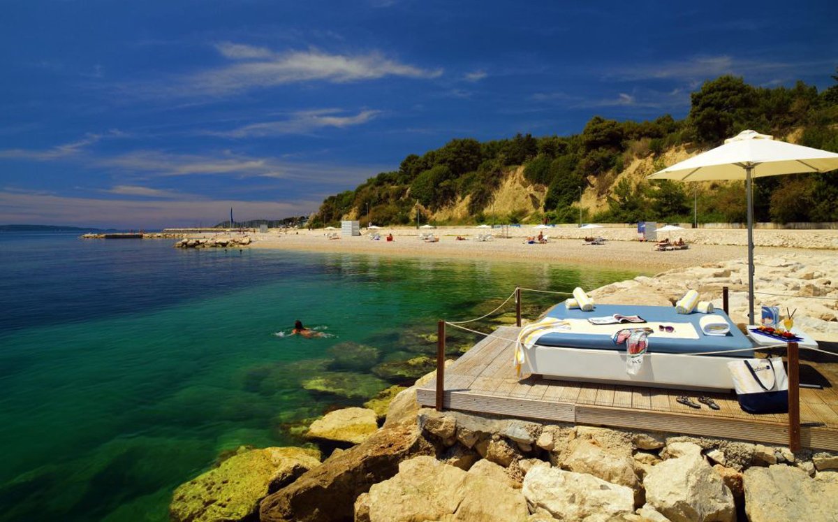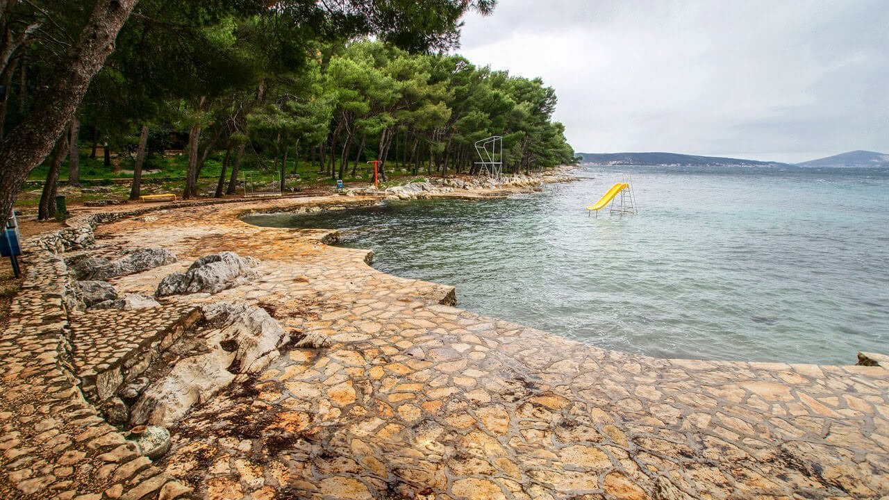 If you are vacationing in Bacvice, you can easily reach Trstenik via the pedestrian path. Even further away is the territory of the Radisson Hotel. You can relax here for free, using the necessary infrastructure-sun beds, a shower, a snack in a cafe. The territory of the hotel smoothly turns into the longest beach of the resort – Zhnyan, a great place for a family holiday. There are many attractions for children and adults, there are sports grounds, trampolines and slides. Comfortable pebble beaches also include Kastelet, and Jesinac has green spaces that provide a pleasant shade on the shore.