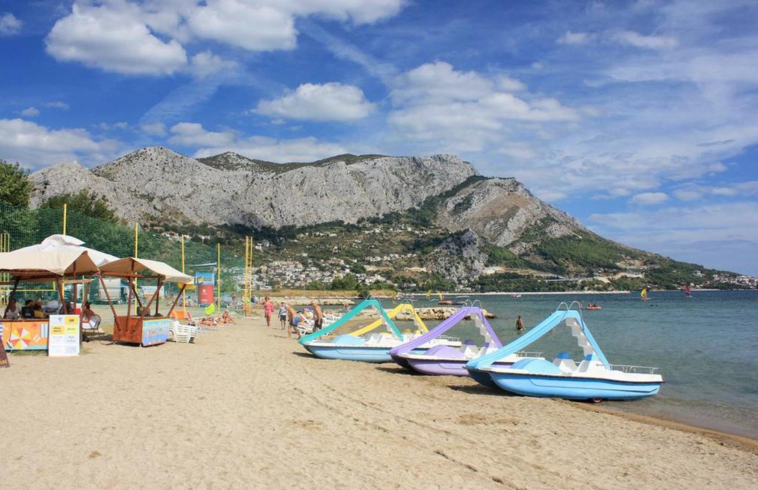 The six-kilometer Duce Beach is a 50-minute drive from Split. There are regular bus services from the bus station, and the ticket price is 50 kuna. The entrance to the water is gentle, and on the shore there is a cafe, you can use sun beds and umbrellas.