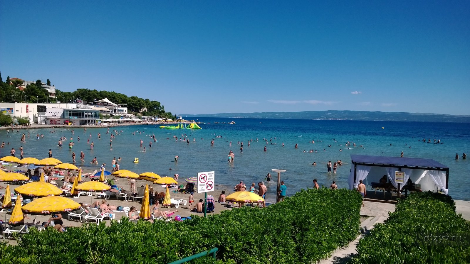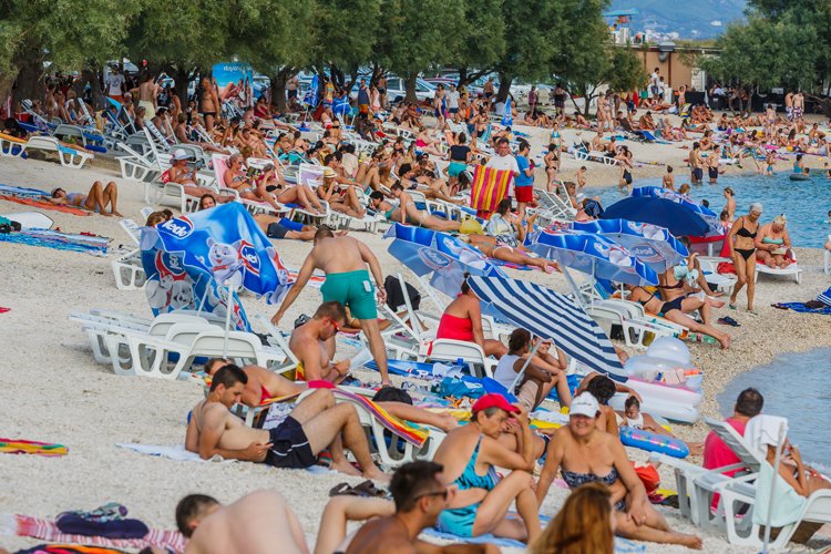 This place in Croatia leaves mixed impressions. Among the obvious advantages-part of the beach has a sandy surface, comfortable sun beds, umbrellas, cafes. A good place for families with children – the entrance to the water is gentle, the bottom is rocky, a small depth is safe for kids. However, the picture is spoiled by the amount of garbage.