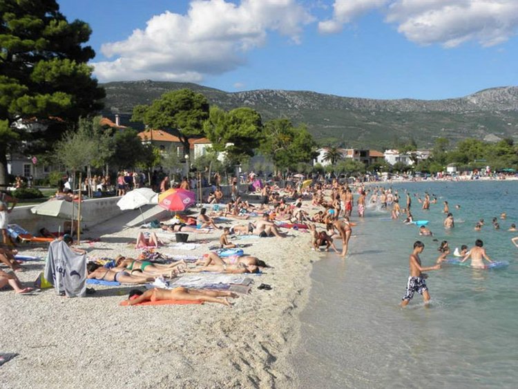 One and a half kilometers from the resort of Trogir is Pantan beach. Its length is 1.5 km along the Pantan River. The beach is covered with sand and pebbles, the entrance to the sea is gentle and convenient for children. People often come here for holidays with children. Buses No. 37 run from the spa town of Split to Tregor. The ticket price is 20 kuna. On the shore there is an infrastructure-sun beds with umbrellas, bars, cafes and restaurants. The eastern part of the beach is covered with pine forest.