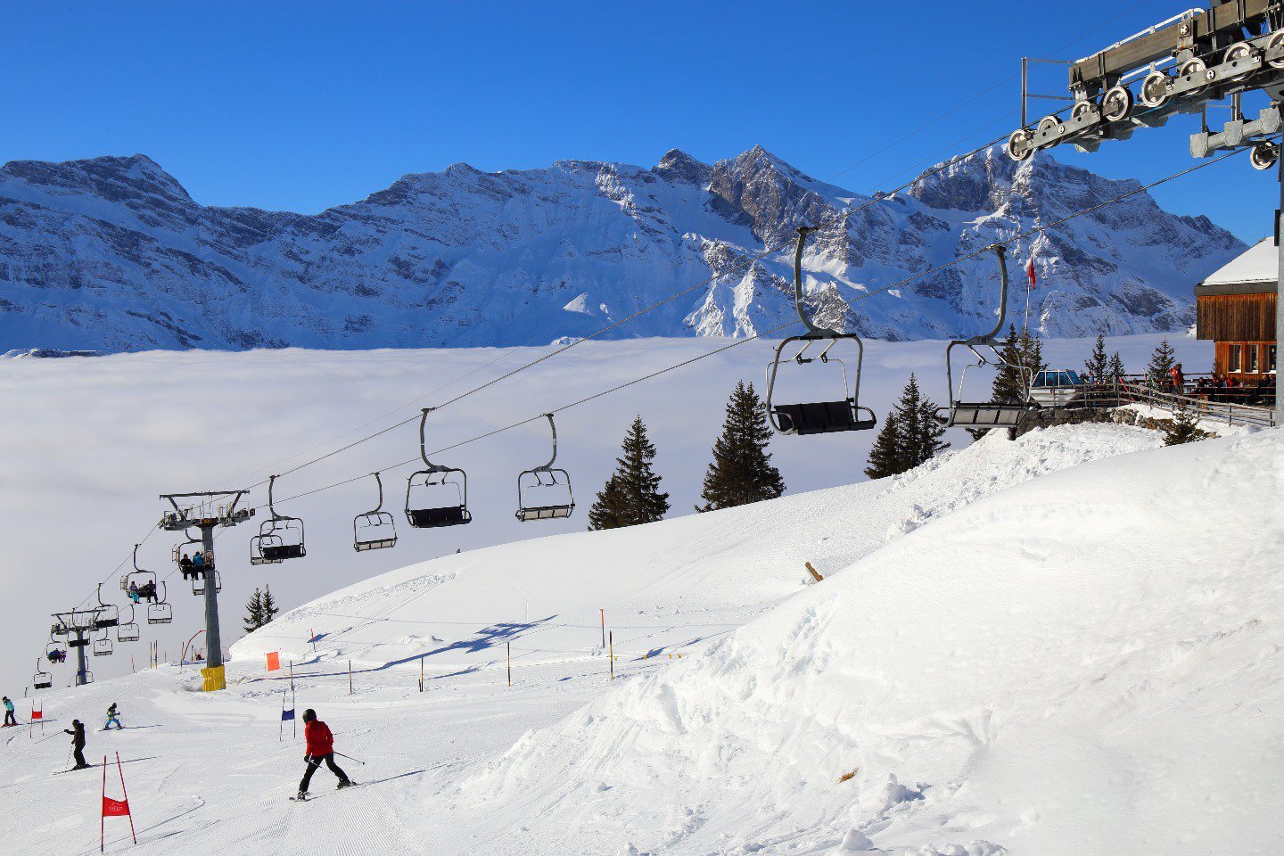 There is also a snowboarding area, a fan park, and hiking and tobogganing trails. Engelberg has a total of 28 trails, 60% of which are kransy. There are 25 lifts available.