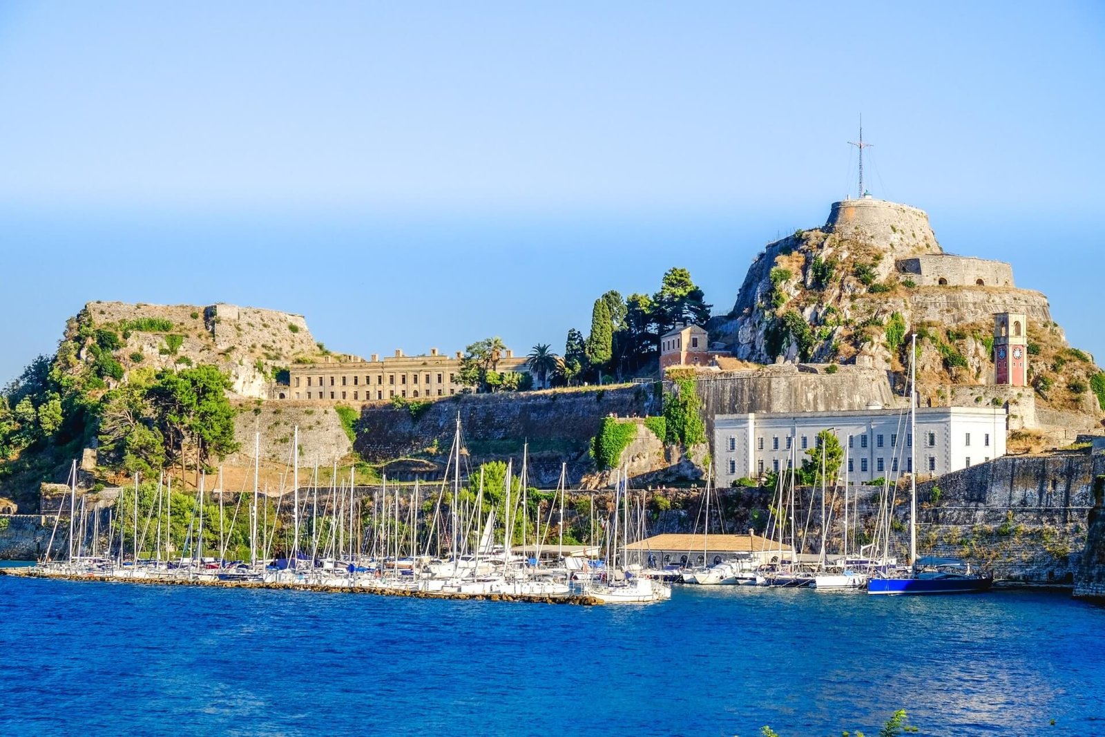 On an artificial island, separated from Kerkyra by a canal, stands Palaio Frourio – one of the oldest fortresses. Its construction began in the 7th century, during the period when the city’s fortifications were built by the Byzantines. It was expanded during the raids of the brutal Ottomans, and at that time, the canal became a defensive moat.