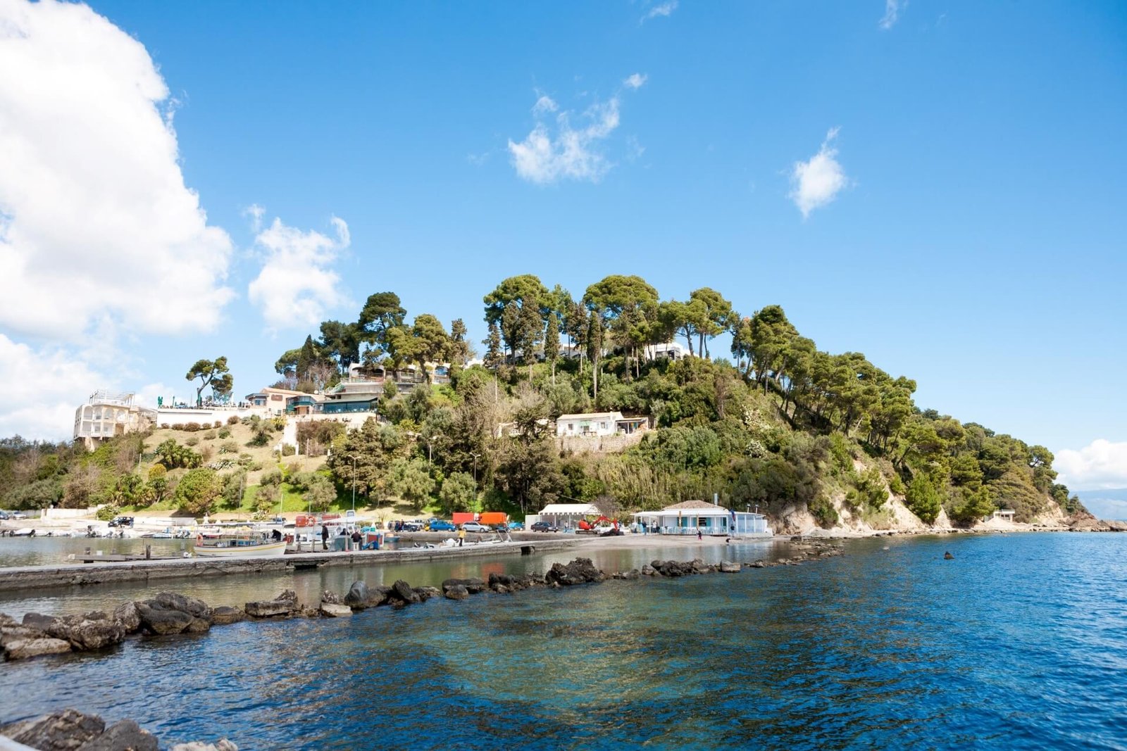 The surprisingly beautiful village is located in the southern part of Corfu’s capital – Kerkyra. Essentially, this is a small peninsula washed by the waters of the Ionian Sea, with wonderful beaches, charming landscapes, cozy houses, and a magnificent hotel. From the village, there are stunning views of the medieval Vlacherna Monastery, located on a small island.