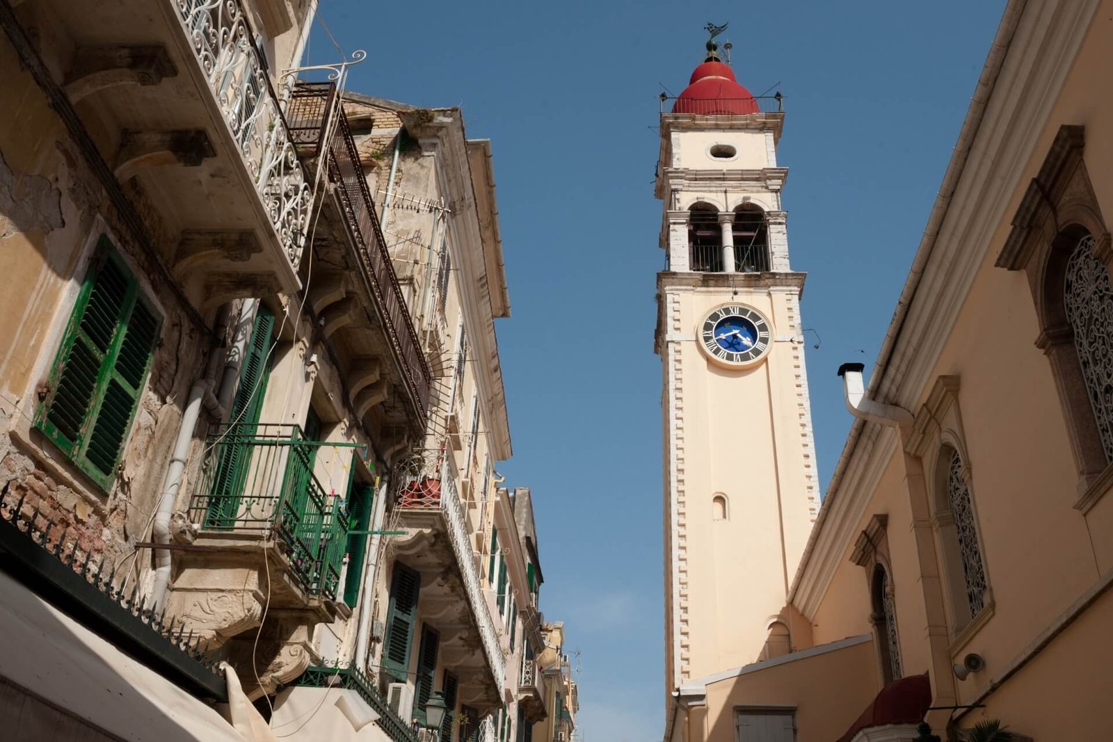 The cathedral was built in 1577 as a standard church, but after reconstruction, which significantly changed its architectural appearance, it became the central cathedral of Kerkyra, with a rich collection of magnificent icons. The exterior of the church looks very noble and elegant: terracotta-colored walls are decorated with white stucco ornaments, a cross rises above the pediment. The elegant bell tower, topped with an original dome, houses a clock.