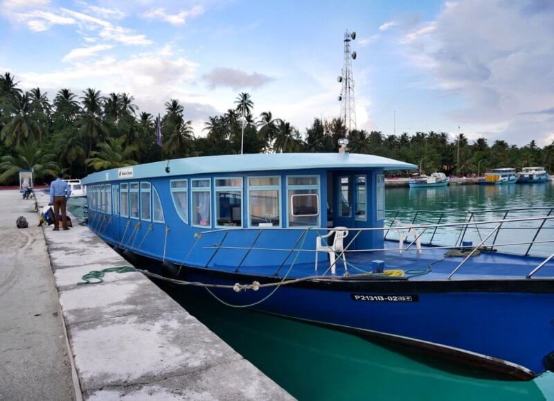 Departure to Thoddoo is available in 9:30, 11:00, 15:00 on all days except Friday. Boats depart back to the airport at approximately 6:30-7:00 and 12:00-14:00.