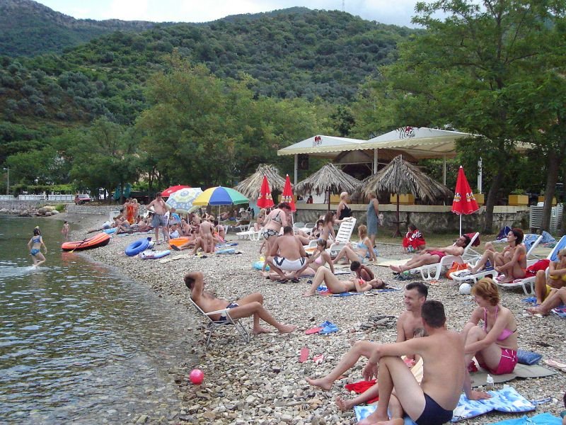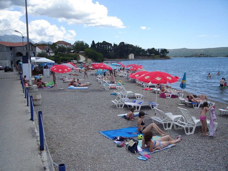 In this place, local and Tivat residents have a rest. But for everyday beach holidays in Tivat, our tourists do not recommend it: according to reviews, it can be noisy on the shore due to the proximity of the ferry crossing, as well as due to the high activity of water entertainment lovers on this segment. Although it is from here that there are excellent views of passing cruise liners.