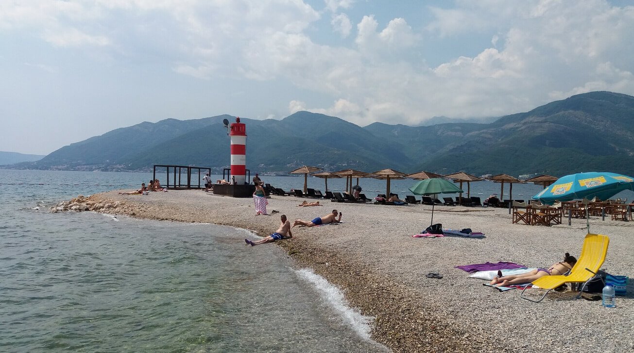 A roadside beach (along the Tivat-Lepetani road), but well “hidden” by trees, consisting of several tiny sandy and pebble beaches 50-80 meters long, with a total length of about 250 m. Approximately in the middle of the coastline is a lighthouse, similar to the lighthouse on the cape of Punta Seljanovo beach.