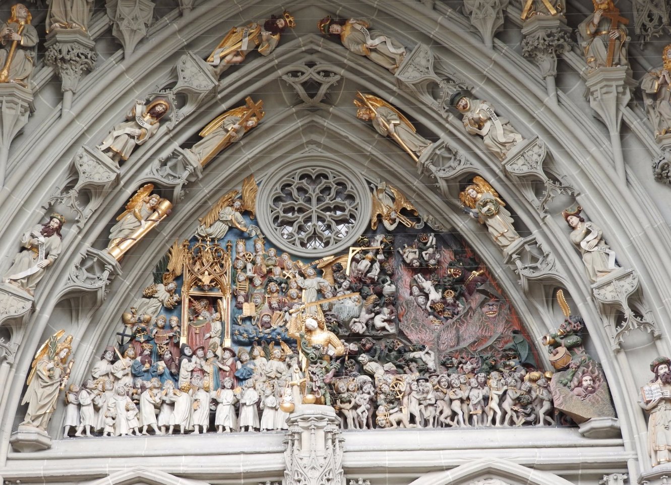 The most famous feature of Bern Cathedral is the exclusive main portal. Erhart Kung, a sculptor and craftsman from Westphalia, created a sandstone masterpiece depicting the Last Judgment. There are 294 sculptures: prophets, angels with trumpets, Jesus Christ as Judge of the nations, Lady Justice (added after the Reformation), martyrs and damned souls showed the faithful what the day of the Last Judgment will look like.