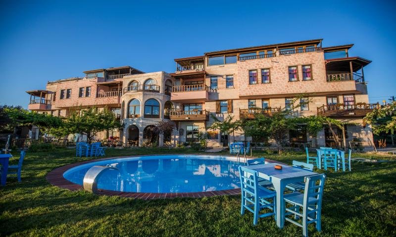 The five-star Dinler resort offers everything necessary for a comfortable stay. It is located in the busiest part of Ürgüp, near a small and excellent winery. From the balcony of their rooms, guests can enjoy unparalleled views of the unique town. The resort complex also features a garden covering 20,000 square meters. Guests are provided with comfortable rooms, a gym, a sauna, and for an additional fee, memorable hot air balloon rides.