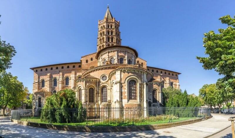 The huge Basilica of Saint-Sernin is one of the preserved buildings of the abbey of the same name, which appeared on the Way of Saint James in the 11th-13th centuries. Built from the traditional red bricks of Toulouse, it attracts attention with its original Romanesque facade, carved stone portals with well-preserved sculptures, beautiful 12th-century frescoes, 11th-century marble reliefs, an old organ, and a carillon with 18 bells, as well as a crypt with particularly valuable religious relics – a thorn from the crown of thorns of Jesus and the relics of 128 Christian saints.