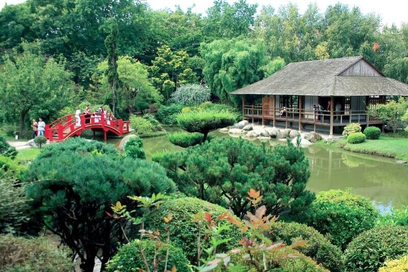 This green oasis occupies an area of 7,000 m². Visitors can enjoy a bamboo grove, a rock garden, exotic plants, the perpetual chirping of birds, and ponds with huge carp that love bread.