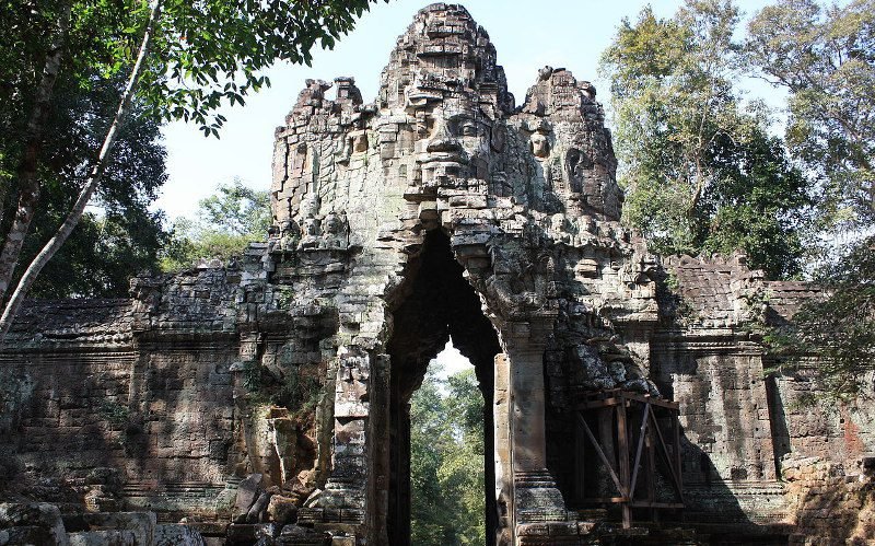 Angkor Thom itself represents a temple city, which was considered the main city of the empire in the 12th-13th centuries. Therefore, it has such an impregnable location. The city had five gates, each with a specific purpose. Today, tourists are taken through the southern passage, which is the best-preserved. The gates themselves can also boldly claim to be unique landmarks.