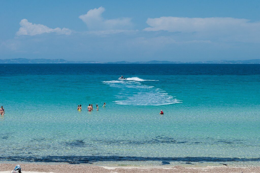 It is located in a bay 2.3 km east of Vourvourou. There is the necessary infrastructure — a bar with music and wi-fi, sun beds with umbrellas. The beach is covered with small pebbles, the water (like vezede in Sithonia) is clean, the entrance to the water is gentle. The disadvantage may be a large number of vacationers in high season, respectively, will have to make room. There are also sea urchins — it is better to put on special shoes.