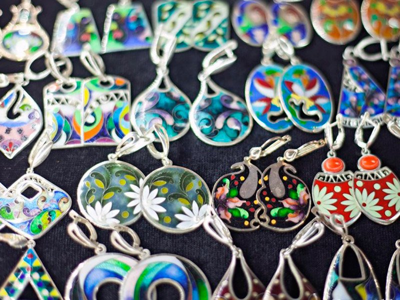 For example, white pigment on a copper base can turn yellow, and red can become brown. Silver is a noble metal most loved by enamel artists. Minankari can be purchased at the “Ornament” gallery in Tbilisi.