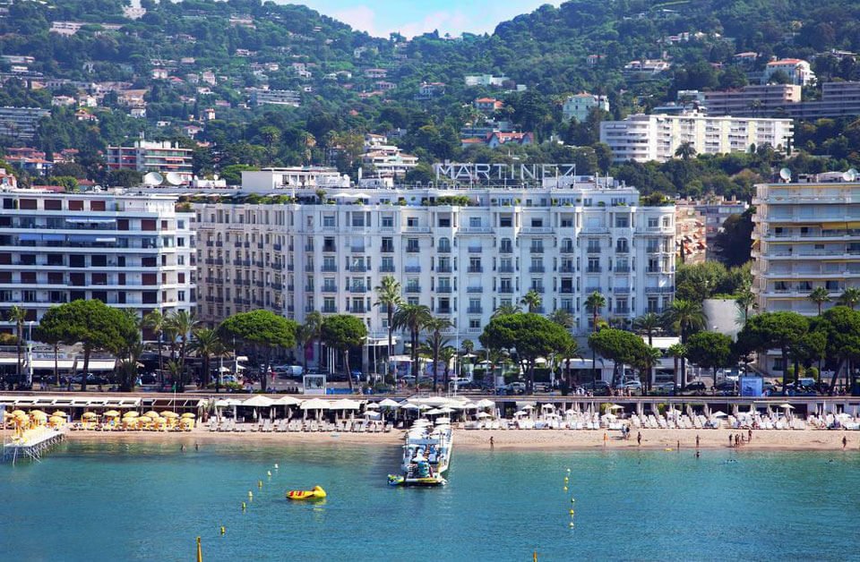 Martinez Beach, the largest on the Croisette promenade, is private and belongs to the hotel of the same name. Beautiful white sand and well-developed infrastructure attract both locals and guests of Cannes. Here you can see 400 sunbeds and a modern pontoon extending far into the sea. The rental cost is quite high, as the hotel is considered upscale.