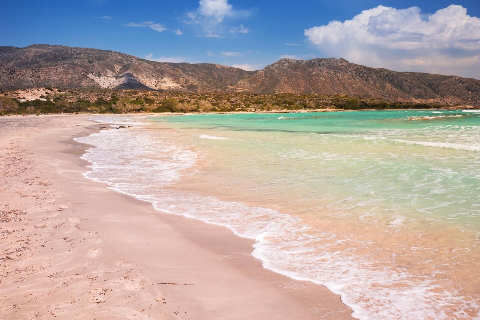 The road is mountainous, with many sharp turns, ascents, and descents, so plan your travel time accurately: all beach services (including the rescue service) cease at 6 pm. Elafonisi is separated from Crete by a 100-meter underwater isthmus, easily crossed on foot. The sand on the beach is unique—pink. This color comes from coral and shell particles living nearby.