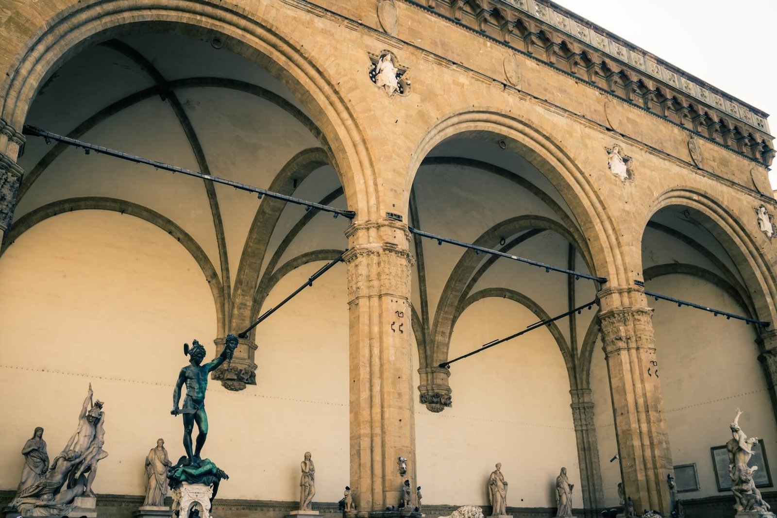 This open corner gallery was built between 1376 and 1382, designed by Benci di Cione and Francesco Talenti. The loggia served as a meeting place for members of the Florentine Signoria and other public gatherings. It is a typical example of Tuscan quattrocento architecture.