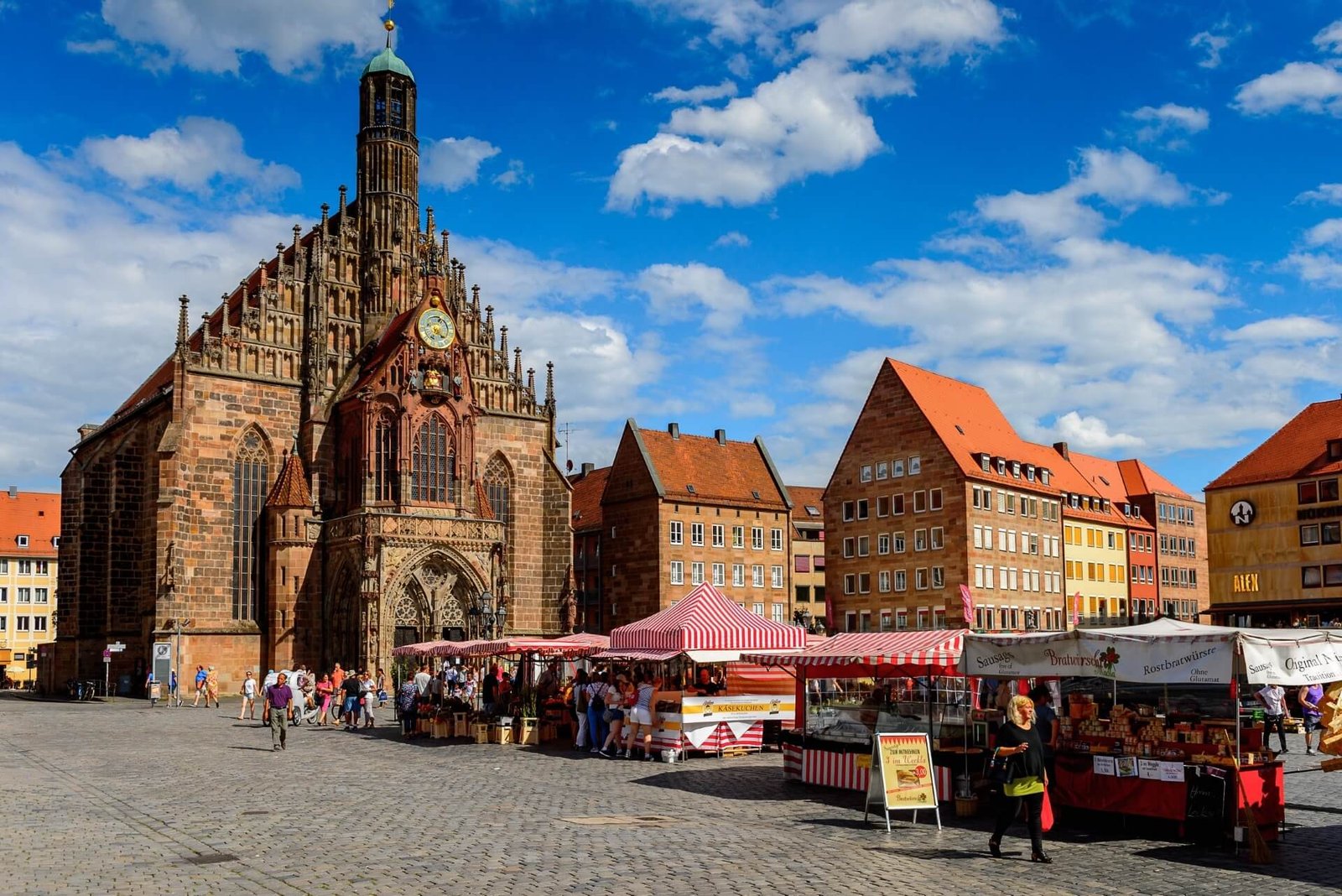 During the Middle Ages, the city was considered the most German.» Here, the attributes of the German emperors’ power (kleinods) were stored. The largest architectural structure in Germany, St. Lorenz Church with the famous “rose” (stained-glass window) with a diameter of 9 m, stands in the city. The most popular Christmas market takes place at the famous market square. It appeared on the site of a burned Jewish ghetto.