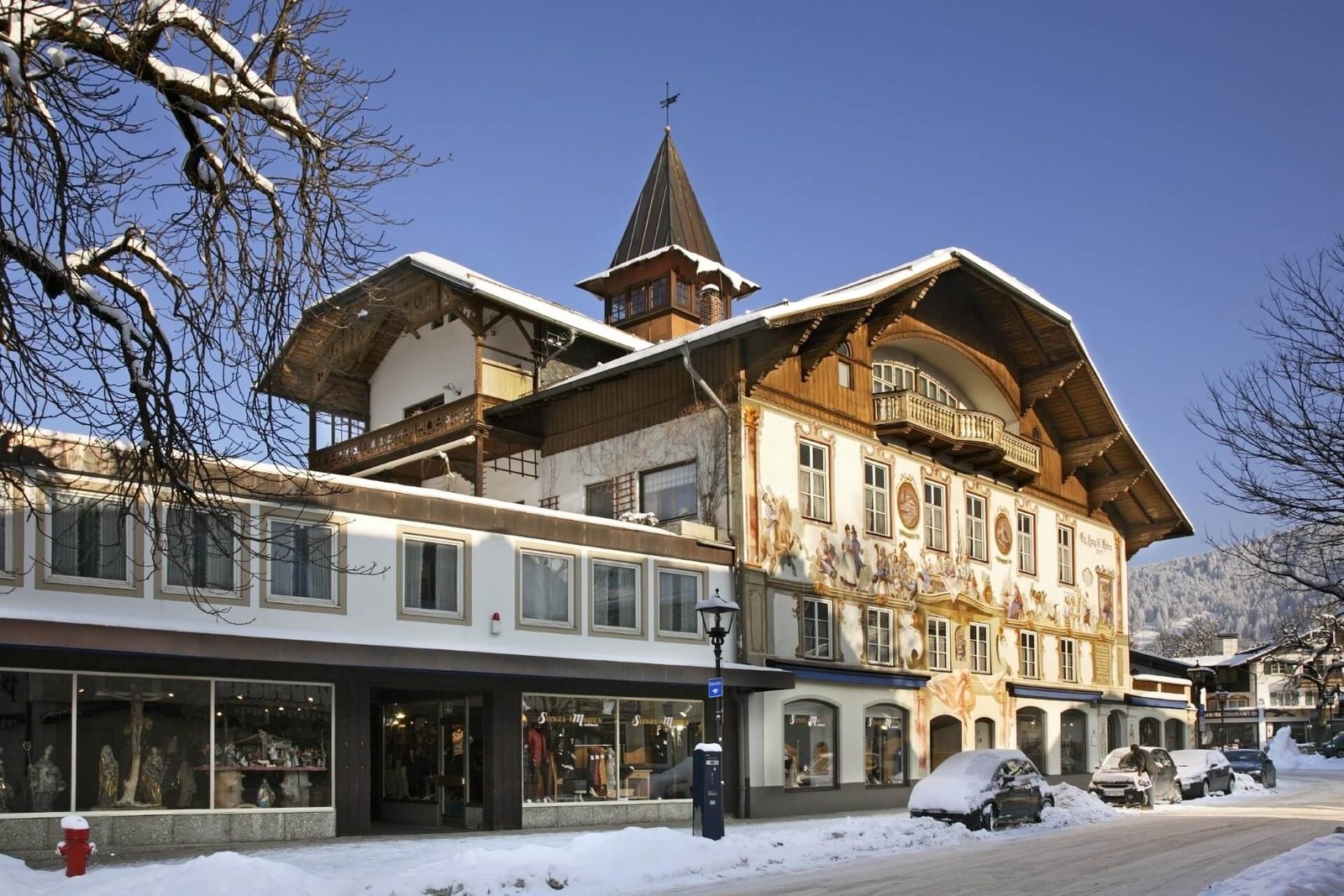 A picturesque village surrounded by the Alps on all sides. They seem to protect the beautiful half-timbered houses (wooden beams with patterns placed across clay walls). Here, in 1748, the famous artist Franz Zwink was born and lived in the Zum Lüftl house, creating a unique fresco tradition. This painting style is called Lüftlmalerei. The village houses are decorated with scenes from the Bible, everyday life, and German fairy tales on the principle of “My nest is the best.”